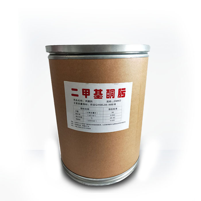 二甲基酮肟(英文名称Dimethyl-Ketoxime)又称为丙酮肟(Acetoneoxime),2-丙酮肟(2-Propanone oxime),简称DMKO。常温下为白色片状结晶,在空气中挥发得很快,有似水合氯醛气味。易溶于水,也溶于醇、醚、酮、烃、石油醚等有机溶剂。有较强的还原性,呈中性反应,能溶于酸、碱,在稀酸中易水解。明火可燃,高热分解放出氮氧化物气体。二甲基酮肟有毒,应避免吸入本品的粉尘,避免与眼睛及皮肤接触。二甲基酮肟是以羟胺和羰基化合物以缩合反应而制得的新型锅炉水除氧剂,分子式为C3H7NO,化学结构式为(CH3)2C=N-OH。